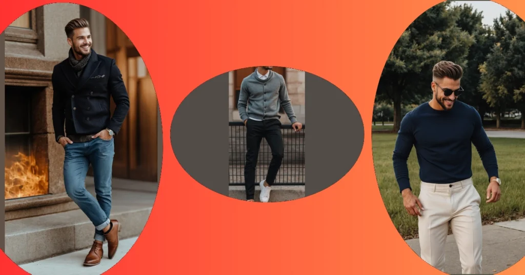 And then there are those slick black pants, which are practically the secret weapon of any fall outfit. They’re super versatile and make you look instantly put-together, even if your brain is still dreaming of summer break. Paired with those clean white sneakers, the whole look just pops. It’s the kind of outfit that says, “Yeah, I’m ready for apple picking, spooky movies, *and* that pop quiz you probably forgot about.” Seriously, fall fashion for men doesn’t need to be complicated; just grab a comfy sweater and some sharp basics, and you’re good to go!