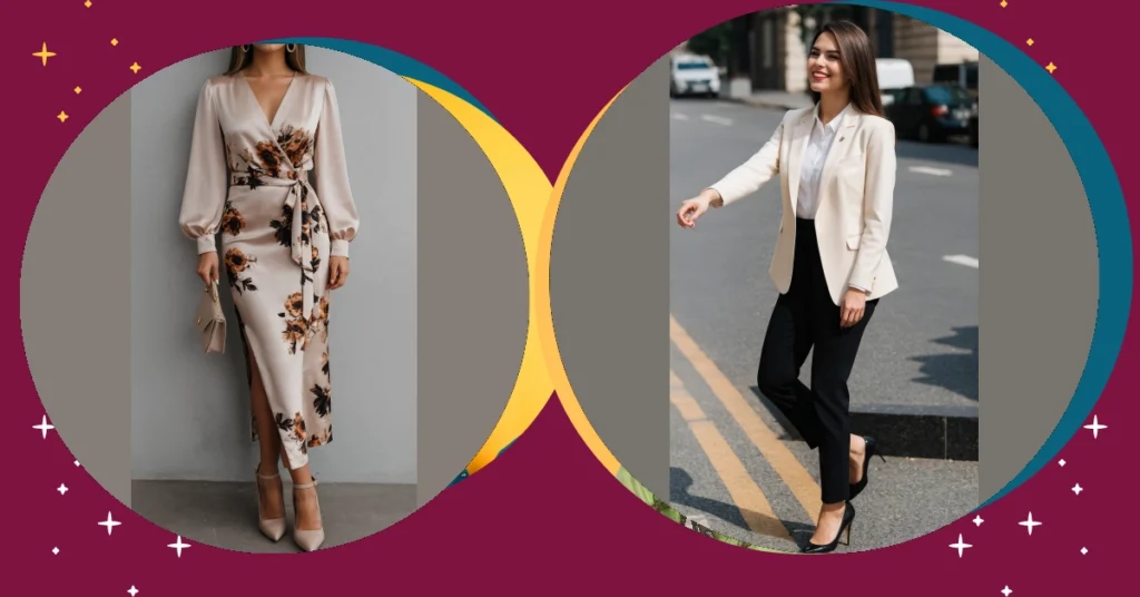Seeing her stride with that huge smile, you’d think she just won the lottery or found a twenty in her old jeans. This isn’t just an elegant women outfit; it’s a confidence booster wrapped in fabric! It’s like, one minute you’re trying to remember where you put your homework, and the next you put on an outfit like this and suddenly you feel ready to negotiate world peace. Just remember, even the most polished look might be hiding the fact that she’s desperately searching for the nearest coffee shop. Still, totally worth it for that “I’ve got this” vibe!