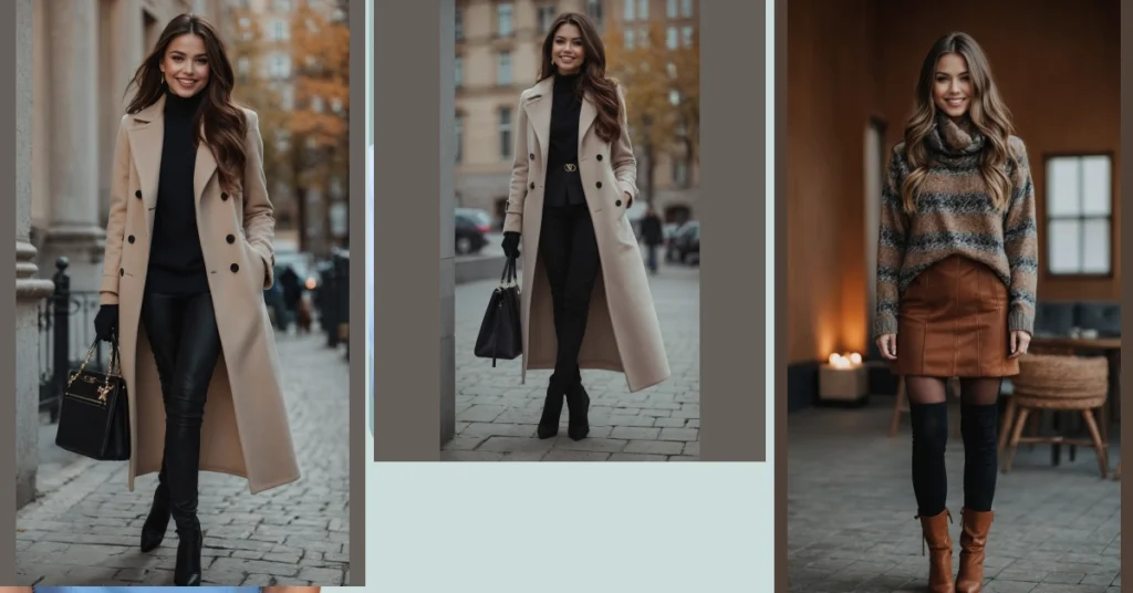 Forget about just crunching leaves this autumn, because this outfit is ready to make heads turn faster than a squirrel finding its winter stash! That long, camel-colored coat isn’t just a fashion statement; it looks warm enough to snuggle into, like wearing your favorite blanket but way chicer. Paired with the matching turtleneck, it’s basically a masterclass in looking super put-together, even if you’re just running out for a pumpkin spice latte (or, let’s be real, hot chocolate!).