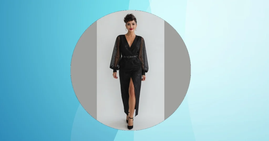 Look at this amazing black dress! It’s got those super cool, slightly puffy sheer sleeves that add a touch of elegance without being too stuffy. And that belt is like a secret weapon for your silhouette, creating a fantastic shape that makes you feel instantly put-together and chic. Plus, that leg slit isn’t just for showing off a little bit of leg; it also adds some serious swagger and makes the whole outfit flow beautifully. These kinds of clever details are fantastic for any plus size outfit, helping to highlight your best features and make you feel totally confident and ready to strut your stuff!