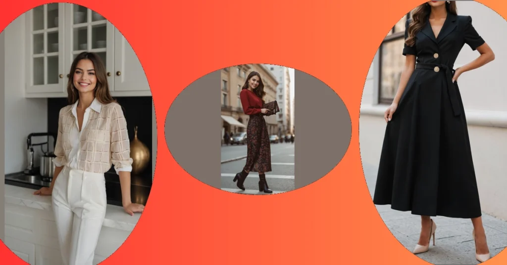 It’s like this outfit is screaming, “I’m professional, approachable, and probably have my life together!” This style is perfect for those days when you need to switch from a serious meeting to, say, debating with your pet why they can’t have more treats. It shows how work outfits don’t have to be boring. Who knew looking sharp for work could also mean being perfectly prepped to make a gourmet lunch or just patiently wait for the toaster? This look proves you can be comfy, stylish, and ready for whatever your “work” throws at you – even if “work” means just trying to find where you left your charger.
