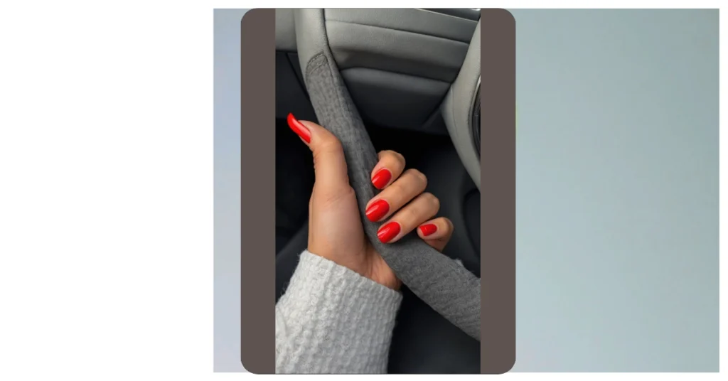 Someone’s got their style dialed up to eleven with these fiery red nails! They practically glow against the gray steering wheel, making sure everyone knows who’s in charge of the tunes and the GPS. It’s like these nails are saying, “Yeah, I’m cruising, and I look awesome doing it.” Forget matching your shoes to your bag; now it’s all about matching your fierce attitude to your fingertips, even if you’re just going to the grocery store. Talk about making an entrance, or rather, an exit!
