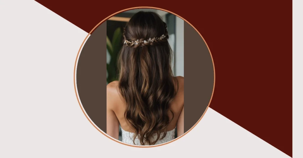 Looking at this amazing hairstyle, with all those gorgeous waves and that super pretty floral headband, it’s clear this hair is ready for a major event! Who needs a magic wand when your hair can look this enchanting? It’s like your locks decided to go to a fancy ball and brought their own sparkly tiara. You know how sometimes your hair just refuses to cooperate and acts like it has a mind of its own? Well, this elegant half-up style is proof that with a little effort (or a lot of hairspray and some serious curling iron skills), your party hairstyle can totally steal the show, making you feel like the queen of the dance floor. Just try not to get glitter in your eyes while you’re spinning around!