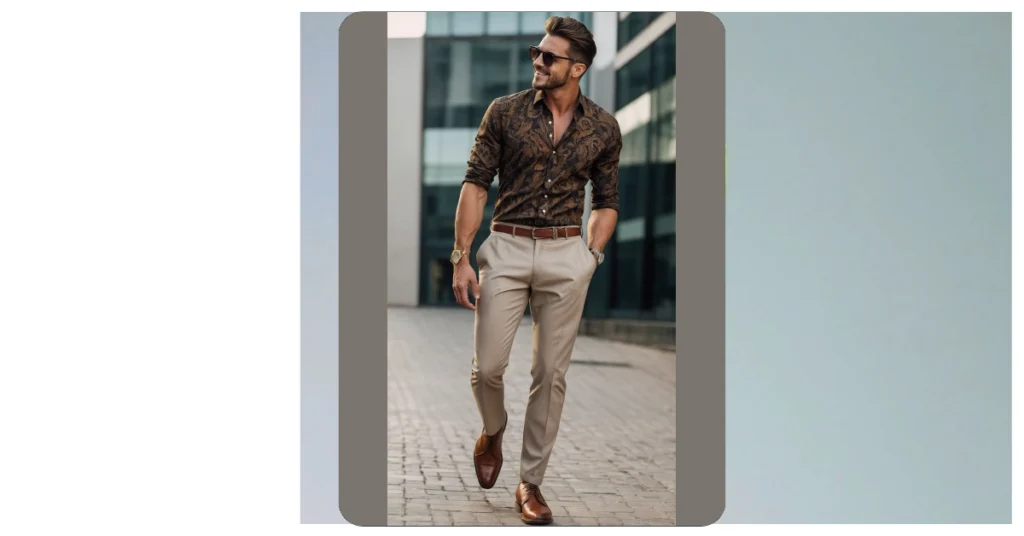 Walking down the street, this dude looks like he just got a ‘Nailed It!’ award from the entire ‘mens fashion reddit’ community. Forget plain tees; his dark patterned shirt is practically having its own party, asking everyone, ‘Who said patterns were scary?’ He’s rocking it so confidently, you almost expect a spotlight to follow him everywhere, making sure everyone sees those perfectly rolled sleeves and the hint of sparkle from his watch.